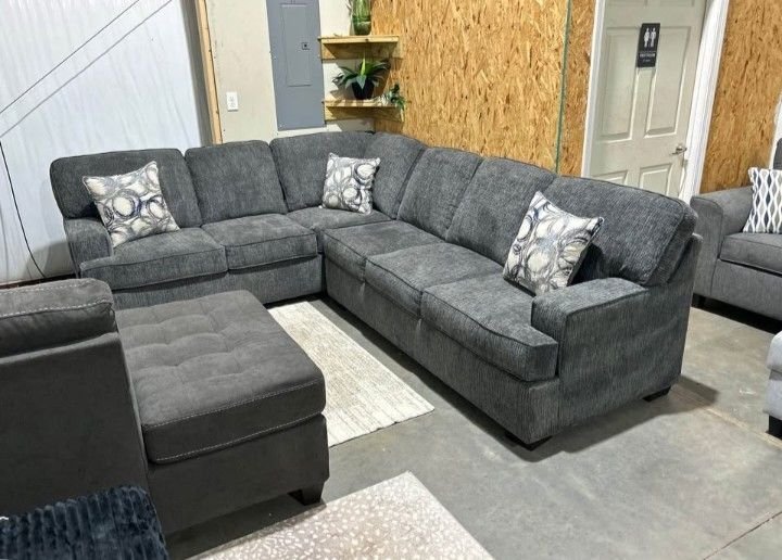 Gorgeous Broyhill dark gray sectional sofa with plush comfort and modern design. Brand new in plastic. Pay only after delivery.
