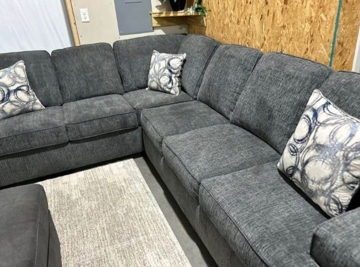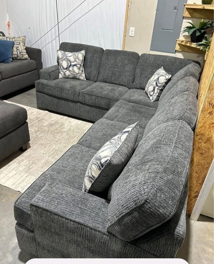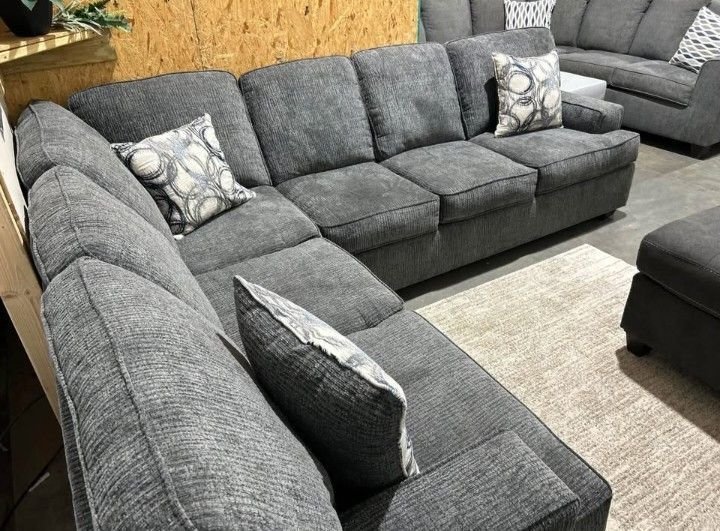 Upgrade your living room with this brand new Broyhill dark gray sectional sofa, designed for everyday comfort and modern style. Featuring a contemporary look, firm yet plush seating, and super-soft durable fabric, this sectional is perfect for families, lounging, and entertaining.