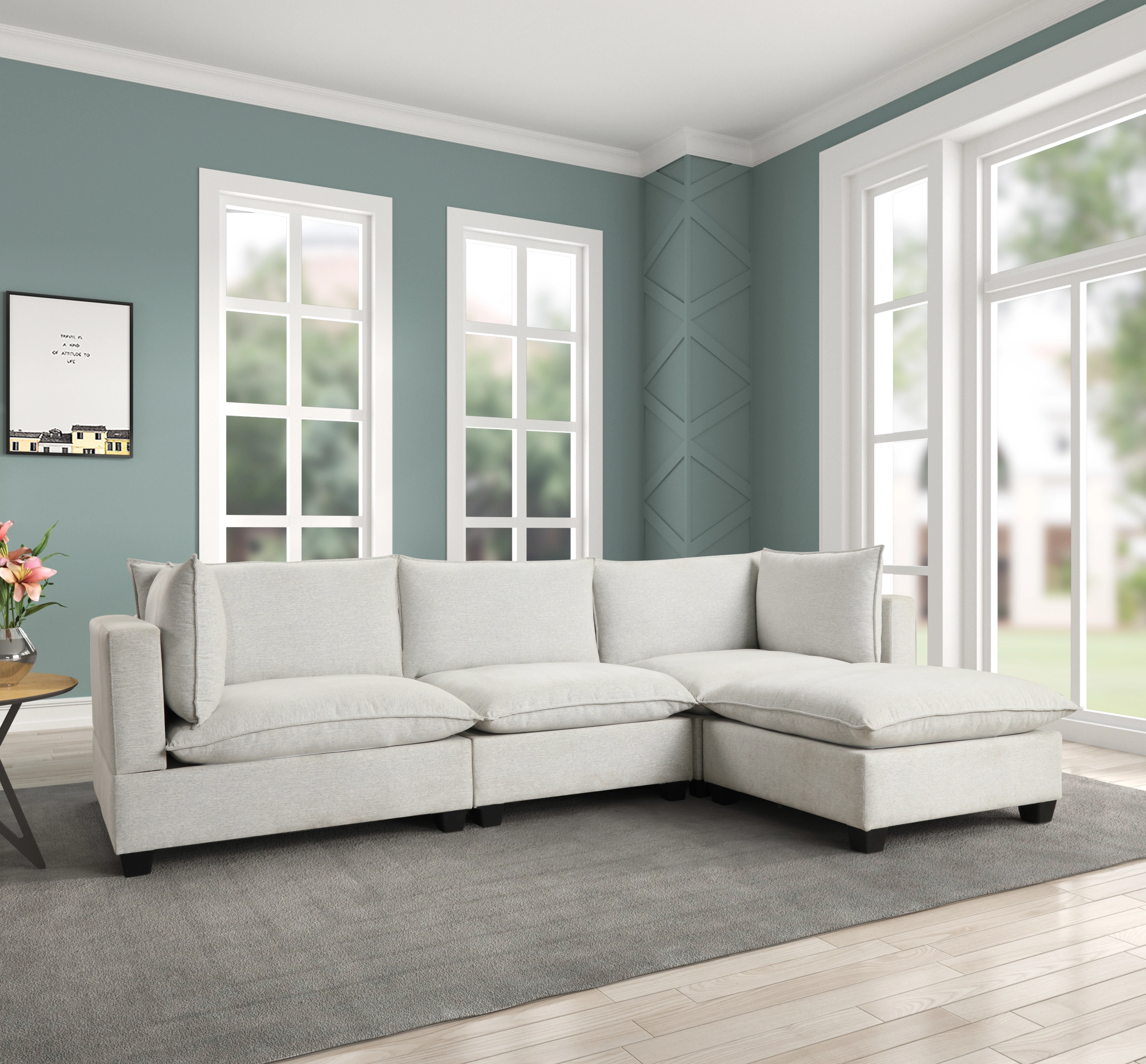 The modular 4-piece design includes a reversible ottoman, allowing you to place the chaise on either the left or right side to fit your space perfectly.