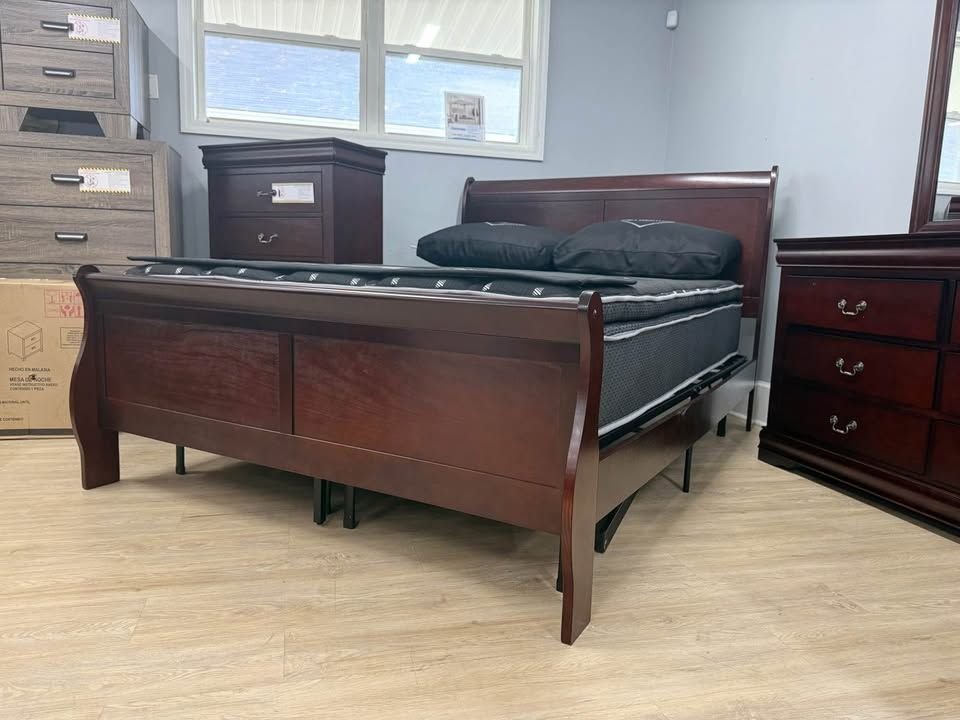 Bring elegance and durability to your bedroom with this beautifully crafted classic sleigh bedroom set. Featuring smooth curved edges, rich wood tones, and sturdy construction, this set delivers a timeless look that never goes out of style—at an exceptional value.