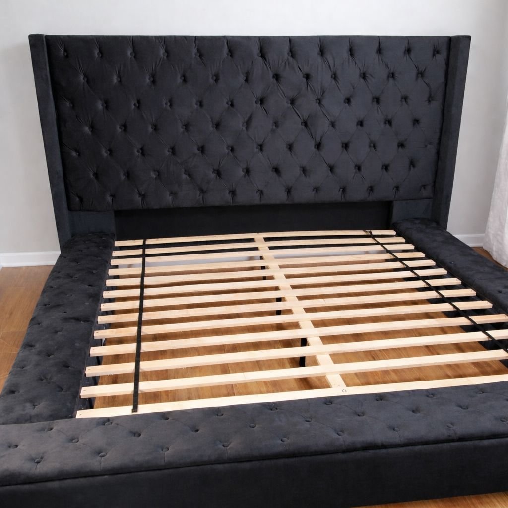 Upgrade your bedroom with this luxury tufted storage platform bed, designed to combine elegant style with everyday functionality. Featuring a tall padded headboard and hidden storage, this bed is perfect for modern homes and apartments.